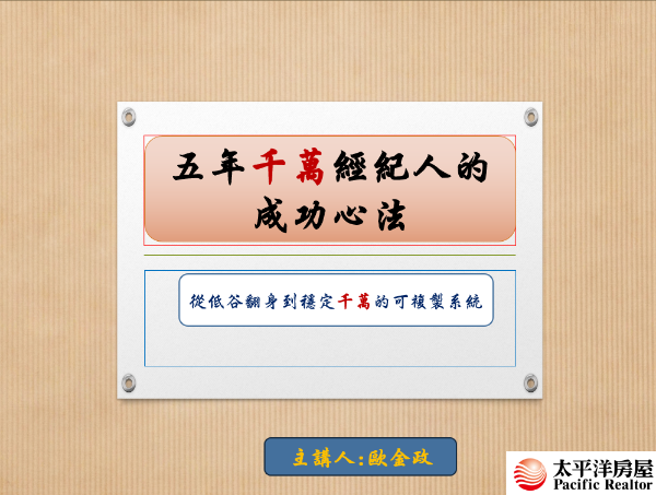 連續五年千萬經紀人的成功心法